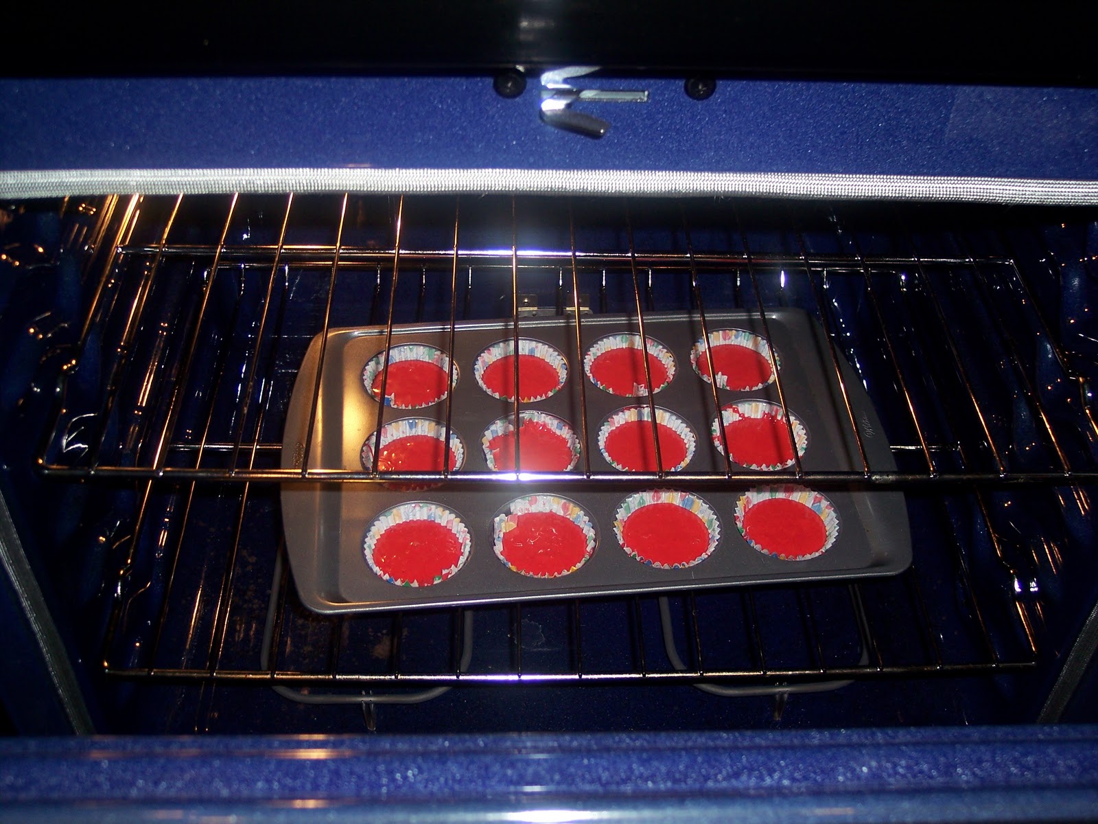 I have to say I must give props to Wilton because they make the best pans! I love have they have extended ends so it's like a handle. No longer do you take the chance of the pot holder destroying your cupcake as you pull out the tray! As you can see those are way too red and need to be more orange!